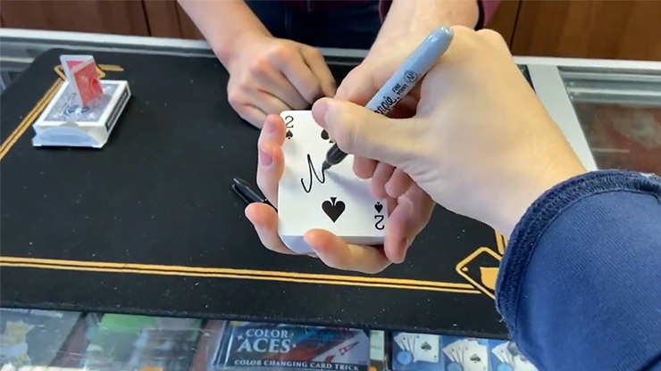 You pick up the card and hand it to your spectator to open. Now watch as their jaws drop when they realize its none other than their signed card!