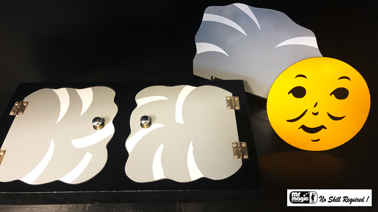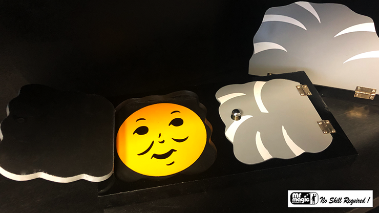 The performer shows a cutout of cloud. The door of the cloud is opened and a disc representing sun/ moon is found. The performer then displays an empty double compartment case, with two cloud painted doors on front. The sun is removed from the cutout and placed inside one compartment of the case. The doors are closed. The case is tilted, and the front door to that compartment is opened. The sun is seen in that compartment. The door is closed and the audience is asked to remember where the sun is. The box is tilted, and the front door to that compartment is opened. The sun is seen to have vanished. The audience is not impressed, because they have heard the sun slide to the opposite compartment. They ask the magician to open the door to the other compartment. The magician closes the door to the first compartment then tilts the box, then opens the doors to the adjacent compartment to show that it is empty.
