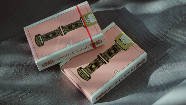 Gemini is a fictional casino deck inspired by classics like Jerry's Nugget and Dunes Casino playing cards. Gemini was made to look like a vintage deck you might find in an old Las Vegas warehouse from the 70's.