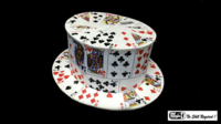 The performer produces and displays a large fan of cards. He tosses the fan of cards into the air and it transforms to a magician's top hat, decorated all over with cards! He can wear the novel top hat or use it as a container for the props in his act, like cards, balls and silks.