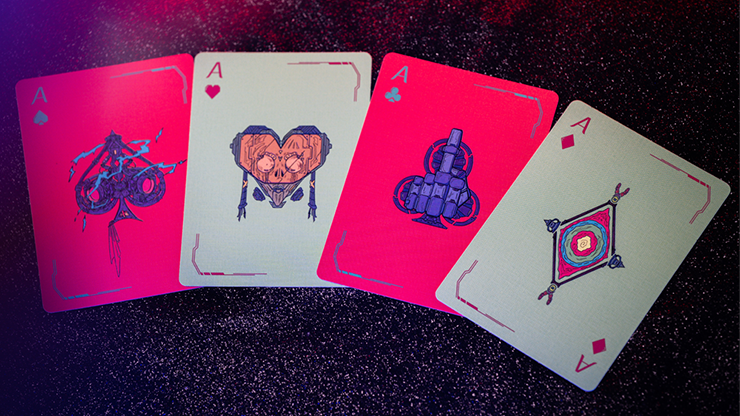 The deck has a very innovative double background design. The base color of hearts and diamonds is light green, while that of Spades and Clubs is rose red. All the A's and their head cards have the image design in Cyberpunk: Origin, which includes Hela, the goddess of death, Rocky, Thor and so on. Can you recognize them one by one after receiving the cards?