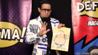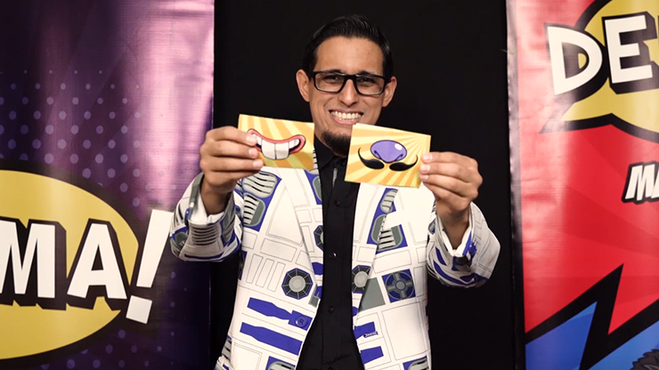 In a selection process you are left with 4 parts chosen by the spectators and with a magic gesture, the image without a face is transformed and now it has all the parts printed!