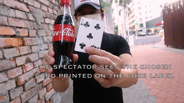 Imagine this, the spectators selects a playing card at random, and with MINIMAL MOVEMENT, the label on the bottle of soda changes and reveals the selected card! The bottle of soda has been in full view this entire time!