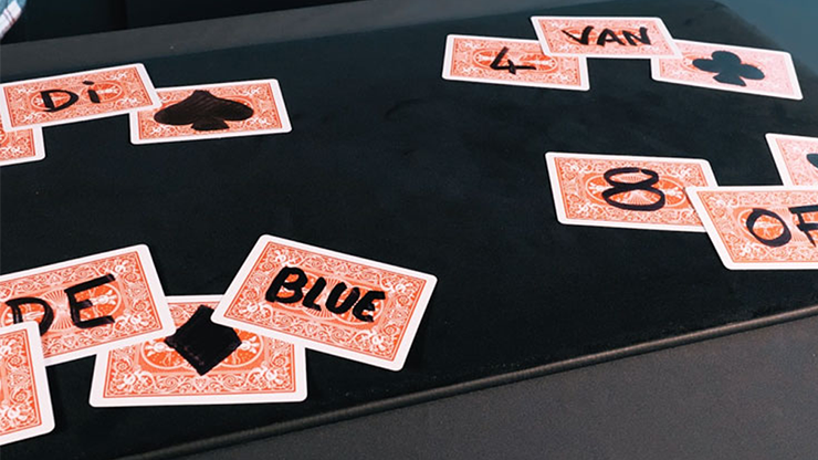 By turning over the chosen cards, a message is formed. The spectators discover with amazement that you had written the name of the final card on the back with a marker! Did they really have power over their own choices or did you somehow manage to influence them? Finally, the last prediction allows a super kicker that is sure to surprise your audience: the chosen card is the only blue-backed card in the whole deck!