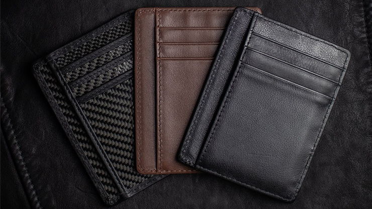 Carbon Fibre Edition: The first magic wallet ever produced in real carbon fibre; to last a lifetime. The glossy, modern look of the carbon fibre is trimmed with vegan leather to create a cruelty free option for performers looking for a futuristic, post-modern look for casual situations, nightclub gigs and street performances.