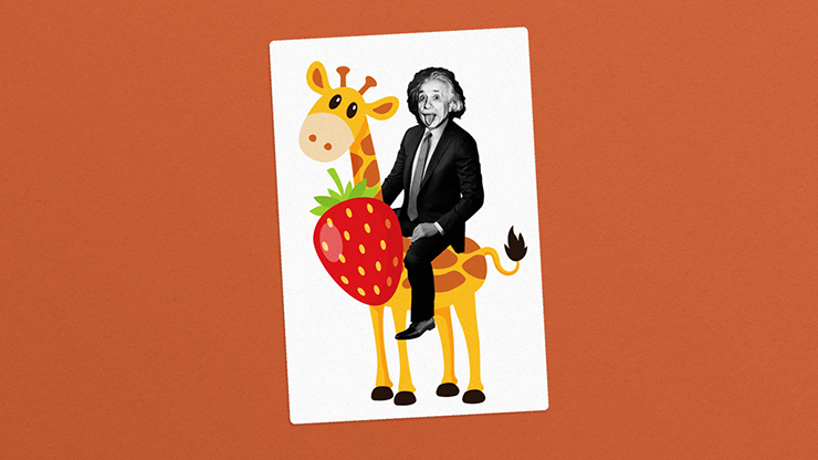 Three volunteers are invited to make various selections. From the audience's perspective, one of them is thinking of a famous person, another person is thinking of an animal and the last person is thinking of a fruit. For example, Albert Einstein riding a giraffe while eating an apple. This seems like a ridiculous combination. Yet, you're able to prove you knew they would make these choices in a hilariously visual way.
