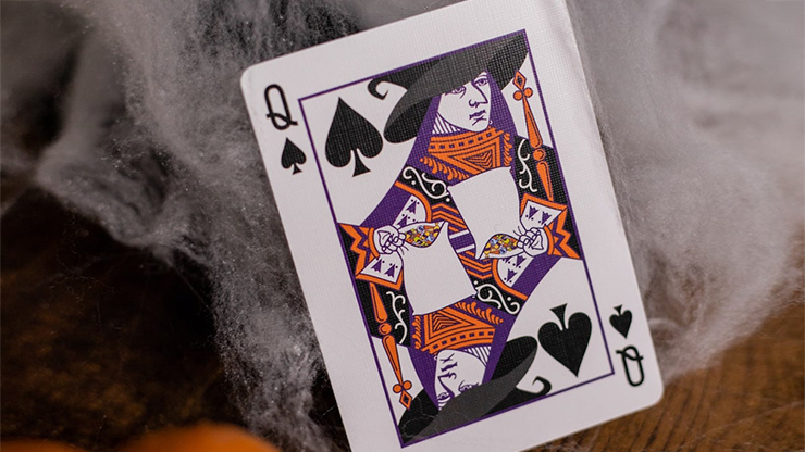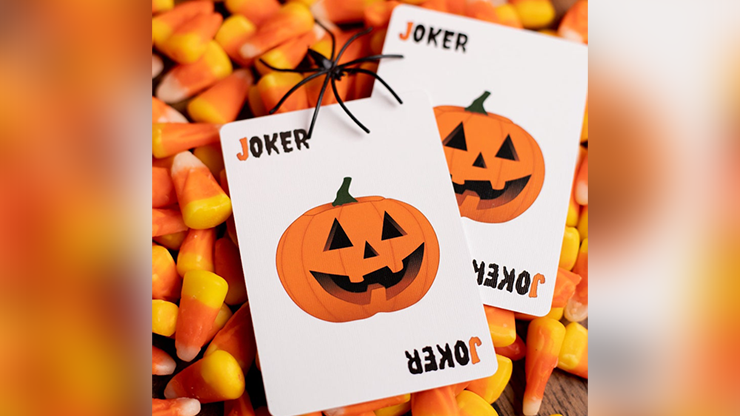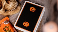 Made by USPCC on premium crushed stock, these pumpkins won't go bad after a few days! Sporting a fun orange border this deck looks amazing in packet cuts and fans. If you are a performer, your audience will LOVE THESE COURT CARDS. Normally we only add something to their hands, but we had to go a step further for this one! All of the Kings are skeletons, the Queens are witches, and the Jacks are all JACK-O-LANTERNS! Yet they are still mostly USPCC standard so that your audience won't lose their head over remembering their card.