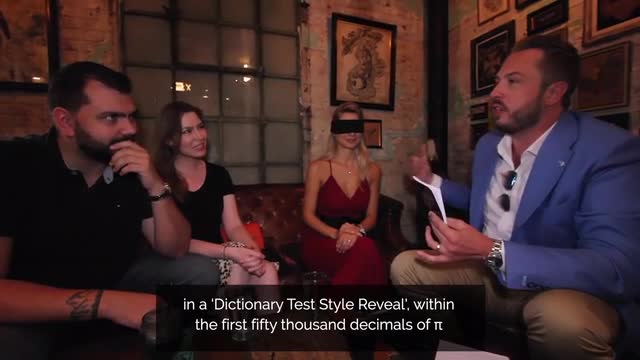 An incredible revelation of a spectator's PIN Number, Passcode, Date Of Birth or a Random Time, in a 'Dictionary Test Style' within the first fifty thousand decimals of pi