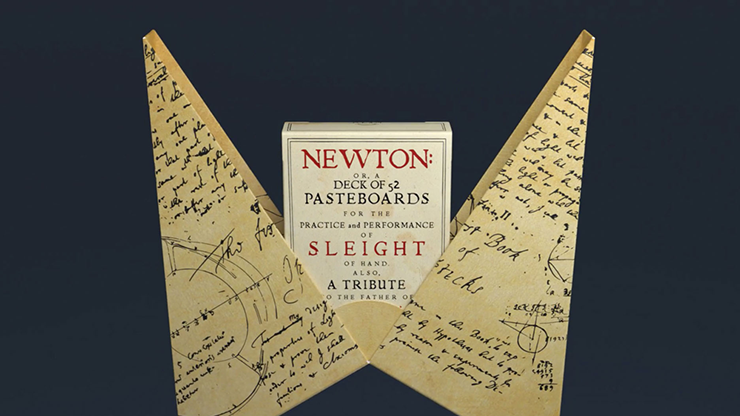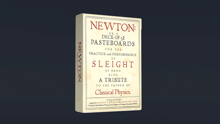 Each download access code comes in an awesome, middle-split box that opens up to reveal a custom deck of cards designed by Stefan Eriksson and inspired by Sir Isaac Newton (a nod to Harapan's passion for physics). You'll also find a packet containing all the necessary gimmick cards for the routines that require them.