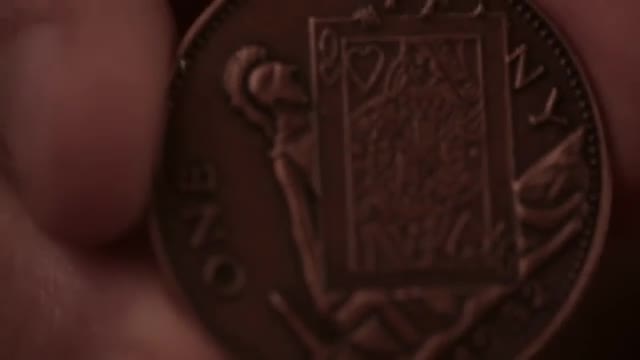 A card is selected and returned to the deck. An indifferent card is placed on the spectators hand. A Old English Penny is inspected and the penny is placed on top of the card. The spectator rubs the nose of the queen on the coin and names their selected card. The card underneath magically changes into the selection.