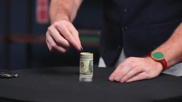 In this version, the cylinder is represented by a rolled-up dollar bill. This feels very fair and doesn't look like a magic prop. You don't have to use an American bill either. Each kit comes with the gimmicks needed to prepare any bill.