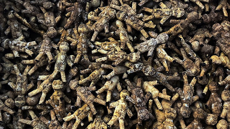 Ask your spectator to think of someone they don't like and explain that you can use black magic to seek some form of revenge. Any giggles will soon be drowned out by an eerie silence as you introduce a creepy coffin box. Inside... some sort of voodoo doll. Have this bizarre 'artifact' examined before placing it flat on your hand and instruct your spectator to imagine something bad happening to their victim of choice. All that's left to do is for them to stick the wooden pin into its heart to commence the dark spell. Under your control, the somewhat 'haunted' voodoo doll begins to rise... all on its own... right under your spectator's outstretched hand... until it's stood up straight looking them right in the eyes.