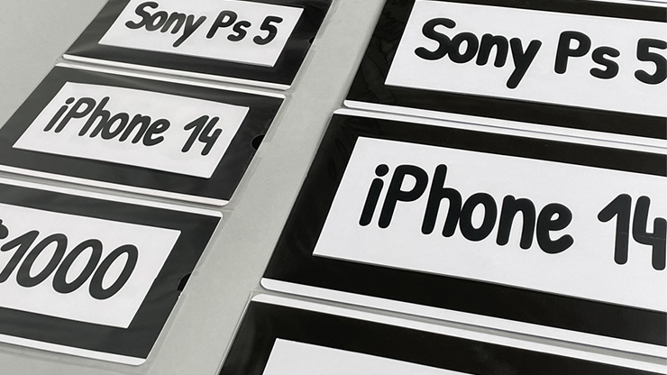 If desired, you can also perform the effect with all the number off of the boards. You can use either the supplied plastic holders (which gives you an additional effect with the numbers) or any holder at all such as notebook holder. Or if you wish you can simply put the cards next to any object on your table. You can make any single card change, whether they are in the foldable clear plastic holder or on the table next to an object!