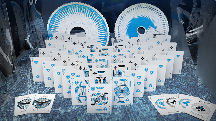 The Falcon Throwing Card Series has a HOT new version and extremely LIMITED - THE AMAZING NEW ICE FALCONS were designed for everything from poker, magic, card collecting, XCM and card throwing! A special stock was created specifically for the Falcon series by the United States Playing Card Company, makers of Bicycle® Playing Cards. This stock despite feeling like a normal playing card, is a hair thicker allowing this deck to be more durable and hit harder than a standard deck of playing cards.
