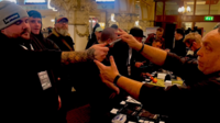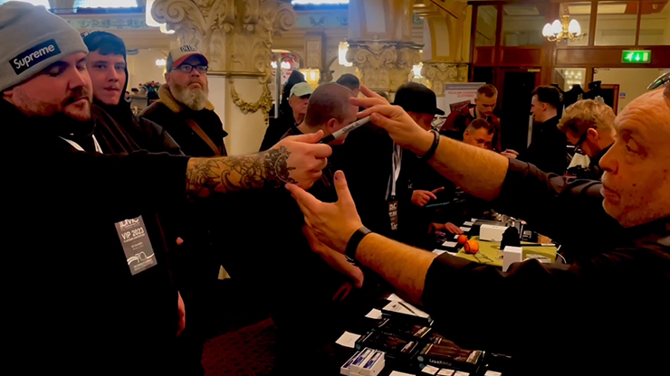 Light/Heavy Pen at your command, a spectator is unable to hold a marker pen in their hands, without it weighing their arms down, until they cannot lift it from the table.