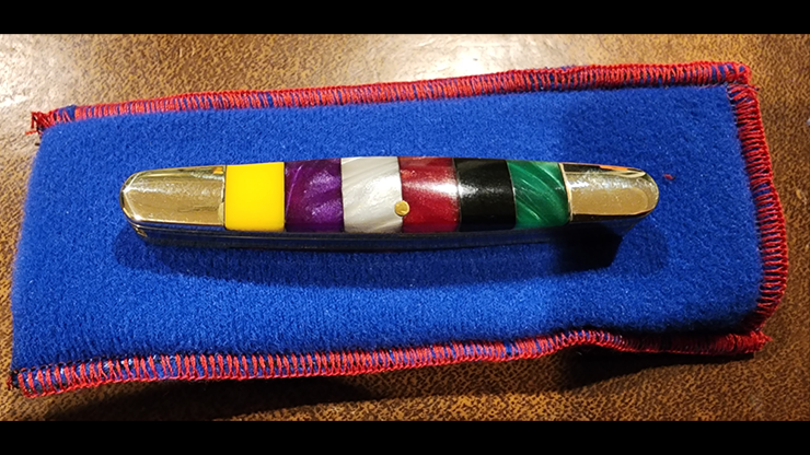 We are only offering 100 of these for those who ask for just the single knife. When they're gone, they're gone! This knife has two matching stainless steel blades, brass liners and pins, nickel silver bolsters, and beautiful pearlized handles! Plus our "trademarked" deep etched thumb pulls are located on each side of the blades for an extra added subtlety. The slightly rounded shape makes the "paddle move" easy to perform and very deceptive. The blades are set deep within the frame as to not draw attention to them when "The Move" is performed. The size is 3 1/8 inches long, by ½ inch wide, so it doesn't take up too much valuable pocket space. This is not a cheap dollar store knife. The machine work is precise in every detail and the handles are absolutely beautiful. Please make sure to order yours today before they all vanish!