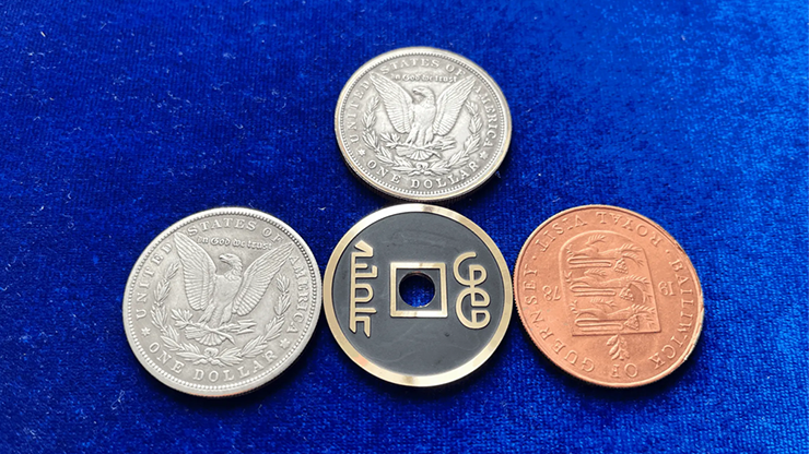 The prop includes three regular coins and a special prop coin that allows you to turn a Morgan coin into three different coins. And detailed online instructions.