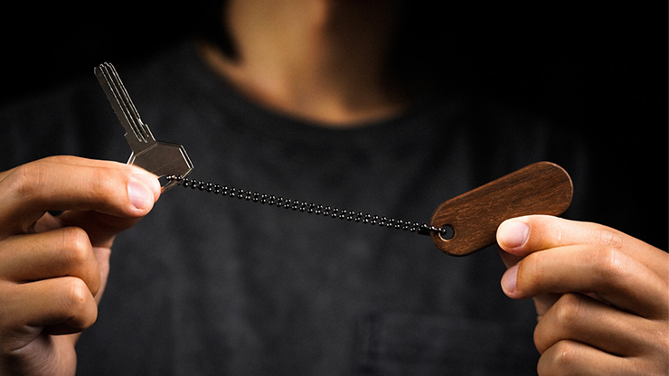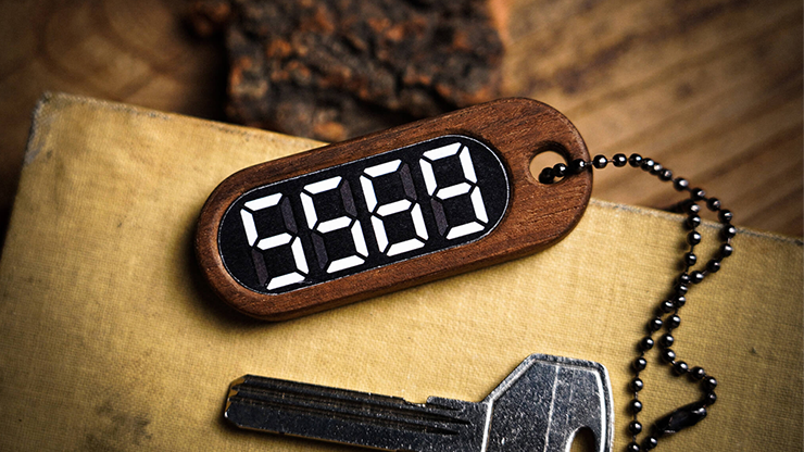 Effect: The magician introduces a walnut wood key pendant with a key attached to it, and begins to tell an intriguing story. Four random numbers are called by the audience, which may even be an important date or time. The magician turns the keychain over to reveal the room number inscribed on the back of the wooden keychain, which perfectly matches the four random numbers.