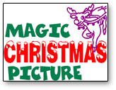 The magician displays a black and white outline drawing of a rooftop with reindeer pulling an empty sleigh that`s ready to land. A volunteer from the audience chooses several different crayons and writes his name on the sign in front of the house, then colors in the reindeer`s nose and adds a little smoke coming out of the chimney. The assistant then holds the picture while everyone says the magic words. When the picture is turned around, Santa is in the sleigh and it`s full of presents, complete with a Christmas tree and everything is colored in! The picture is then given to the child as a souvenir.