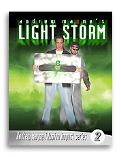 The lights in the theatre darken. Strange music begins to fill the air as fog rolls on to the stage. The magician picks up a thin board. An assistant holding an eerie green work light walks on stage.