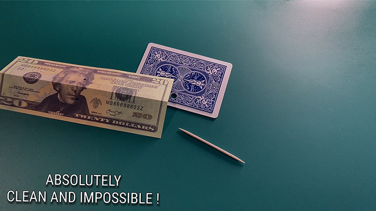 Using the toothpick, pierce the bill right through! The card is now trapped in the ticket!