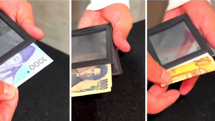 A dollar bill changes into bills of various countries. Coins or cards can be used in place of the changed bills. Example of use Put a $1 bill in the wallet, showing it well. Through the window, you see the $1 bill is firmly in your wallet. The next time you cast the spell, the $1 bill will change into a Japanese bill. You can move on to the next magic trick using the changed bill.