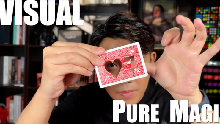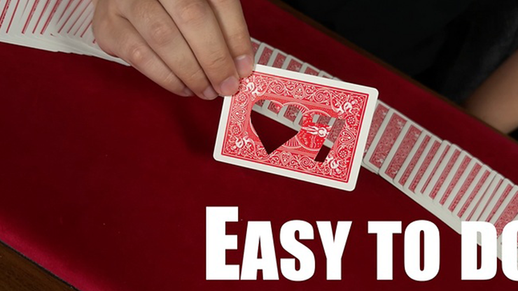 The performer then waves the card and the spectator's selected card appears as two holes, cut straight through the card. Then the card is instantly restored into a normal card visually.