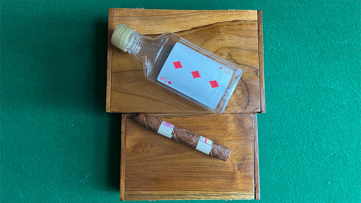 Robert Harbin was Eric Lewis's best friend, hence Martin got the rights from him for his "Card in Bottle" effect using flat bottles and a set of nested boxes.At his lectures Martin performed this effect with a patter evolving around his old friend Dai Vernon, using a cigar besides the bottles as a convincing prop.