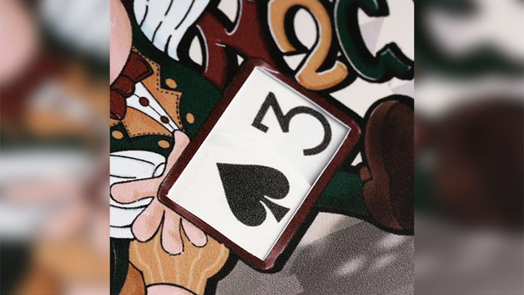 On a colored cardboard, the magician holds a card while a small, vivid magician figure is seen pulling a prophetic card from a painting. The magician then invites a viewer to freely pick and name any card from the 52-card deck. At this moment, the magician simply tears open the prophecy, and the card held by the magician on the cardboard matches exactly with the viewer's choice! Without asking any questions, or employing forced choices or suspicious movements, the prophecy is revealed straightforwardly, stunning the entire audience!