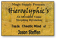 The magician shows his card case with hieroglyphic symbols written all over it. A card is selected and lost inside the pack. The cards are placed on top of the card case with the hieroglyphic symbols. The magician instructs the spectator to place their hand over the cards and case, concentrating on the selected card. The cards are lifted and nothing has happened. The case is then lifted off of the table and the cellophane is lowered. The symbols visually melt together, spelling out the selected card!
