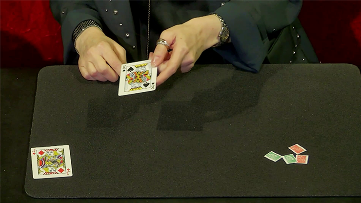 These are displayed in a square pattern, two red stamps are placed on two diagonally opposite corners, and two green stamps are placed on the other ones.