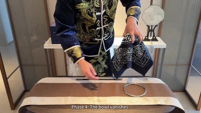 What makes this set unique is its unprecedented finale: instead of the usual appearance of extra objects, the bowls themselves can vanish from the table and reappear. When they return, three bowls are produced in succession - one filled with flowers, one with flowing water, and one with grain. This climactic transformation is extraordinarily rare, even in China today. Best of all, no repeated loading is required: everything is designed so the sequence flows naturally, allowing you to perform a complete routine from beginning to end.
