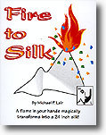 A flame appears at the magician's fingertips. Suddenly, the fire goes out, and a 24 inch silk appears in its place!