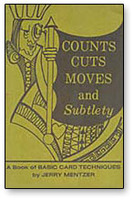 Here at long last is a book of basic counts, moves and maneuvers that are used primarily in tricks with small packets of cards. If you know nothing of basic card magic, this book will instruct you. Many of the basic counts such as the Elmsley Count, Jordan Count, Haback Count, Spirit Count, etc. are described. The Ascanio Spread and many other moves and false counts are also included.