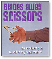 Blades Away Scissors The magician displays a pair of ordinary looking scissors, even using them to cut a piece of rope. Immediately, the scissors are handed to an assisting spectator who finds that the scissors have no blades at all! Very easy to handle and quickly resets.