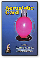 The magician inflates a balloon and places it into a wooden stand. A spectator then selects a card, which is lost in the middle of the pack. The magician squares the pack and places it on top of the stand, right on the balloon.