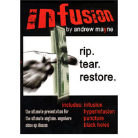 INFUSION teaches you the handling for the basic effect along with two variations including a lightning fast version. You also learn Andrew Mayne's BLACK HOLES illusion where you cause your finger to warp space and travel across the universe on a sheet of paper.