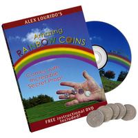 No longer is beautiful coin magic reserved for the expert coin magician thanks to Alex Lourido's revolutionary, RAINBOW COINS! This ingenious, high quality utility prop will have you performing expert-level illusions that once required years of study and practice. Immediately, out-of-the-box, you will amaze everyone around you with this versatile and easy-to-use device. Imagine showing your hands completely empty and then instantly producing a coin from thin air followed by performing an entire slew of mind twisting vanishes, changes, and transpositions that simply defy physics! And to top it all off, you end your display of artistic skill by instantly changing the borrowed coin into six identical coins, beautifully displayed at your fingertips - and you do all this without any difficult loads, steals or sleeving techniques, because everything you need is contained in one simple-to-use device!