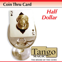 The Magician presents a playing card and a half-dollar coin to the audience, both of which are examinable before and after the trick is performed. The card is then placed on top of a glass, and the coin is placed on top of the card. The Magician picks up the card slightly, begins tapping it on top of the glass, and the audience witnesses the coin miraculously fall through the card and drop into the glass.