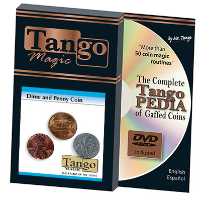 Tangopedia, a four-hour instructional video. This video includes basic instructions for more than 50 gimmick coin routines using a variety of our specialty coins such as Expanded Shell-Coins, Copper/Silver/Brass, Scotch and Soda, Pen Through Coin, Folding Coins, Okito Boxes, and more. From this video you will learn the basics of using your new