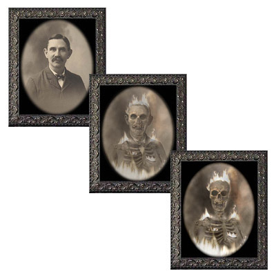 These high-quality pieces are a truly unique form of art, yet still affordable for the average "home haunter." Use them to spice up a Halloween Party, a Haunted House maze, or your own year-round ghostly gallery! No batteries, electricity, or special lighting required! Just put the portrait in a frame and the ghostly entities will do all the work!