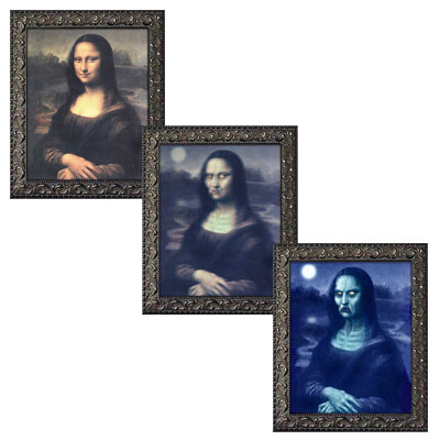 Simple to use, yet extremely effective, these morphing images are designed to transform when you change your position. When your unsuspecting guests walk past them they will see these seemingly normal "relatives" change into hideously frightening creatures or macabre apparitions!